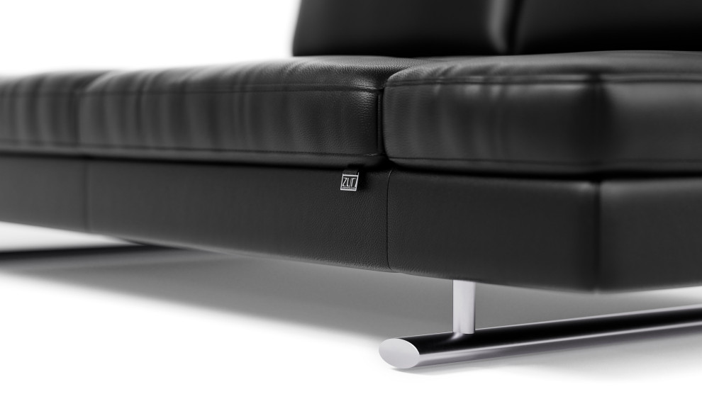 Match your home's contemporary vibe with the Bentley Leather Sofa Set. It comes with a matching sofa and loveseat with plush cushions and a soft yet supportive tufted seat. The backrests lift either all the way up or all the way back to make an extra deep seat. The armrests are on a ratcheting mechanism, allowing them to go all the way up or all the way down. There are two optional headrests that can be pulled out and put on either side easily. The sofas' low-rise design and discreet base almost make it look like they're floating on air. The full leather exterior makes these sofas soft and easy to clean. Put a marble or glass coffee table in front, and you're ready to show your living room off to guests.