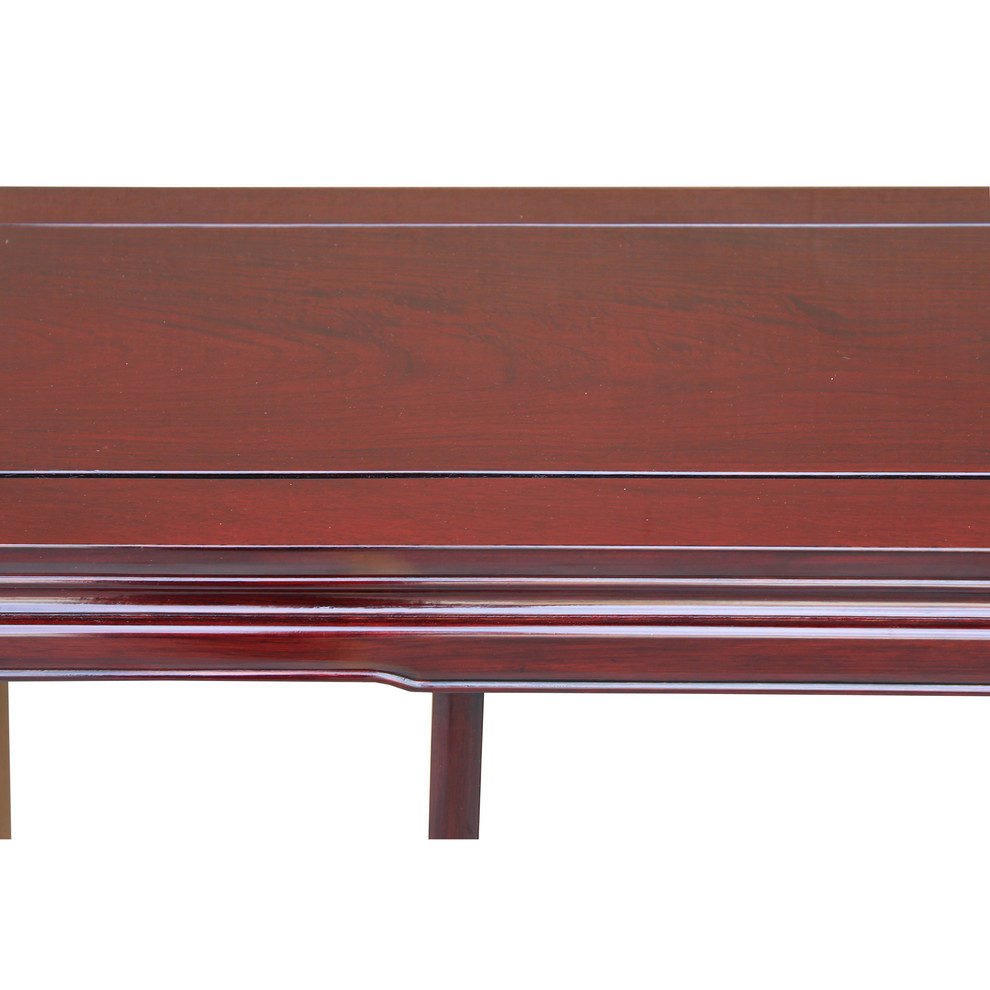 This is a handmade Chinese accent decorative altar table in a rectangular shape. It is made of natural hardwood, Chinese rosewood - Huali which has beautiful light brown color and wood pattern. It has a simple straight-line apron accent.