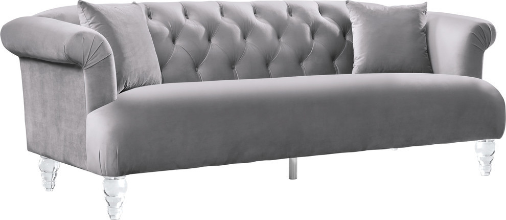 - Elegance Contemporary Sofa in beautiful gray velvet