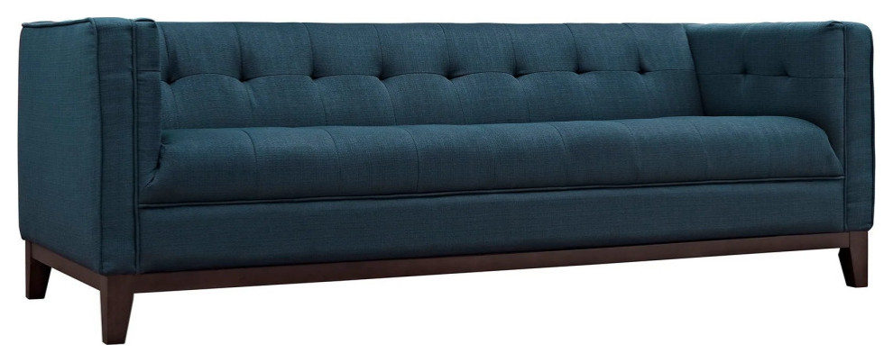 Further your sensibilities with Hannah. Elegantly inset with a central line of tufted buttons and fine polyester upholstery, Hannah enhances an ambiance of exceptionalism with a refined design that spans the ages. Hannah features dense foam cushioning, walnut stained wood legs with non-marking foot caps, and a supportive seating experience. This modern take on mid-century design is perfect for living rooms, lounge spaces, and reception areas.