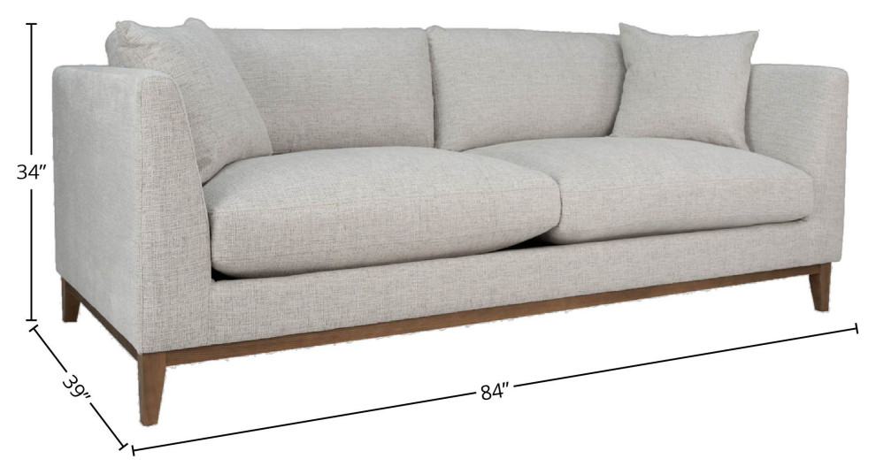 Introducing the Harmony Sofa. This sofa is classy, comfortable, and cool. Constructed with care from a pine and oak wood frame, it is perfect for a lounge or sitting room. The soft linen cushions are colored a calming tweed gray. Relax in style with this sofa.