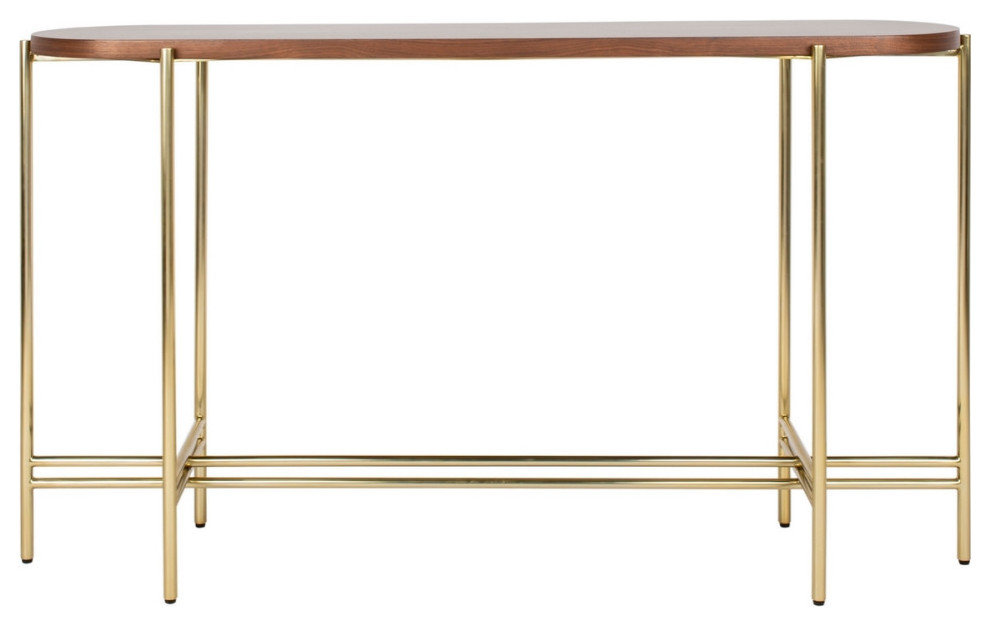 Transform any living room or foyer into a grand salon with this Josie Console Table. Meticulously crafted with a rich walnut-veneered top, Josie's charismatic elegance is elevated with a polished brass frame that lends depth and intrigue to your decor with its double-crossed base.