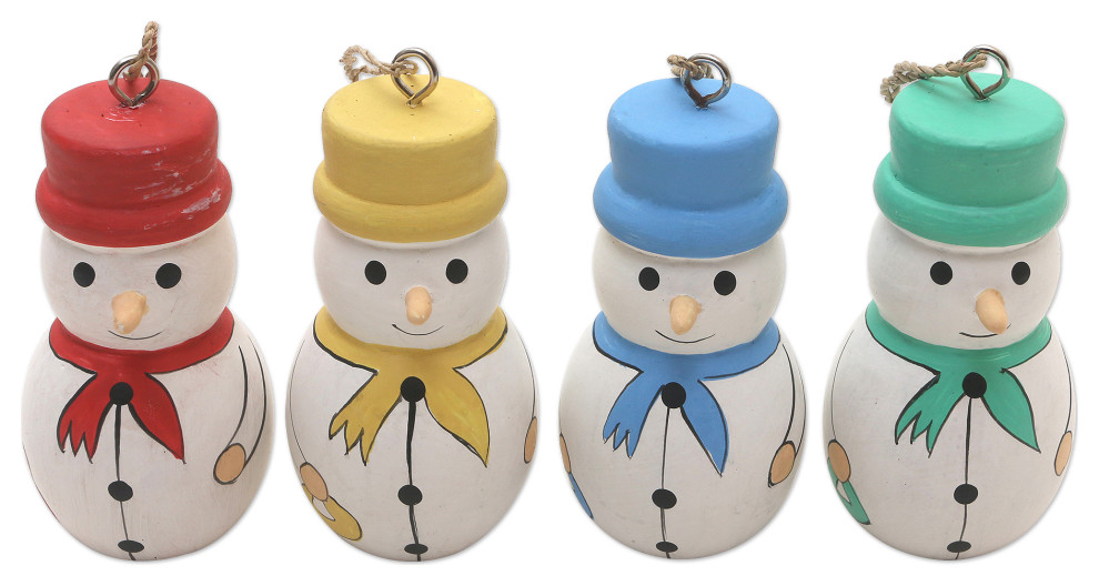 Novica Handmade Dapper Snowmen Wood Ornaments Set of 4 Christmas Ornaments by NOVICA Houzz