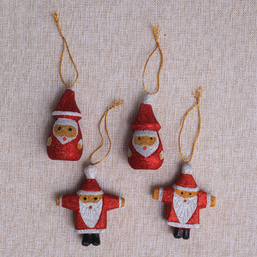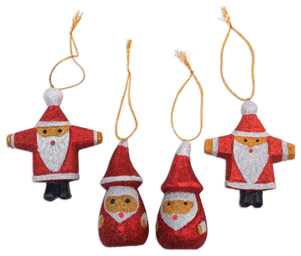 Novica Handmade Sparkling Santas Wood Ornaments (Set Of 4) Christmas Ornaments by NOVICA Houzz