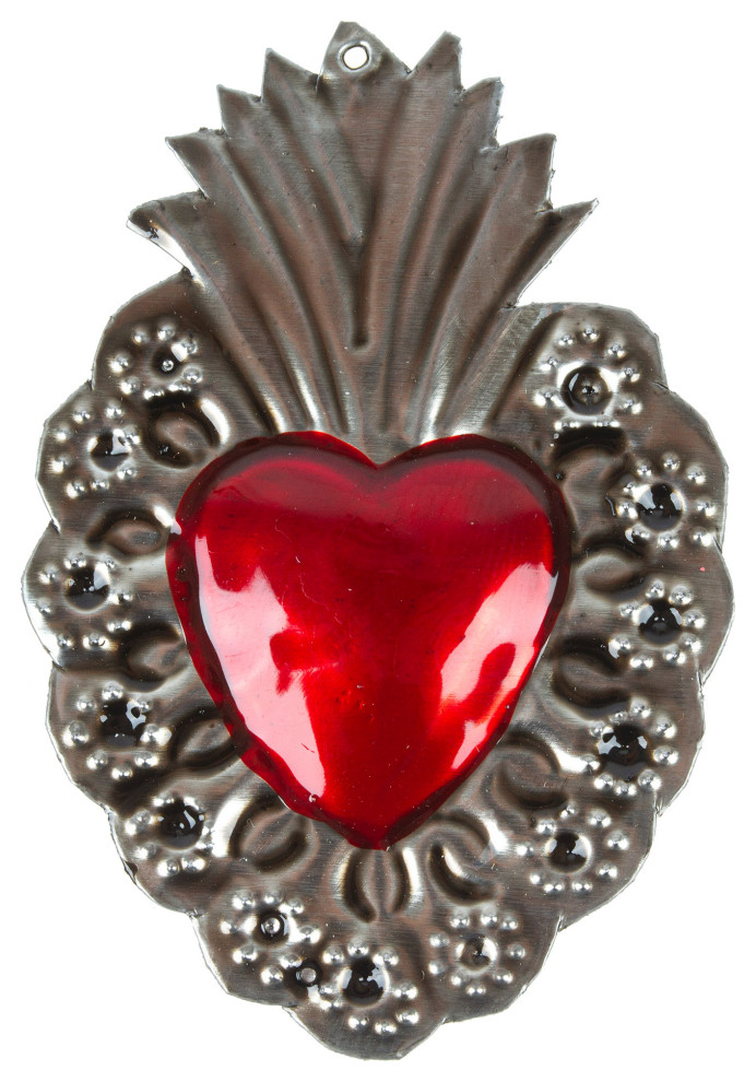 Mexico's Creative Hands of Oaxaca crafts beautiful creations with traditional motifs from the region. After a long process to ensure a high-quality item, the artisans bring a sweet tin-plated steel heart to life, adding a vibrant red tone and repousse details inspired by nature.