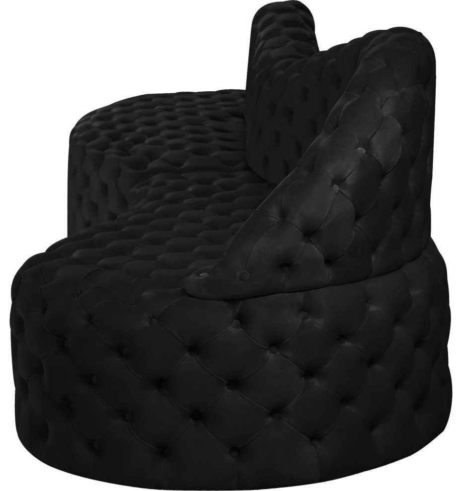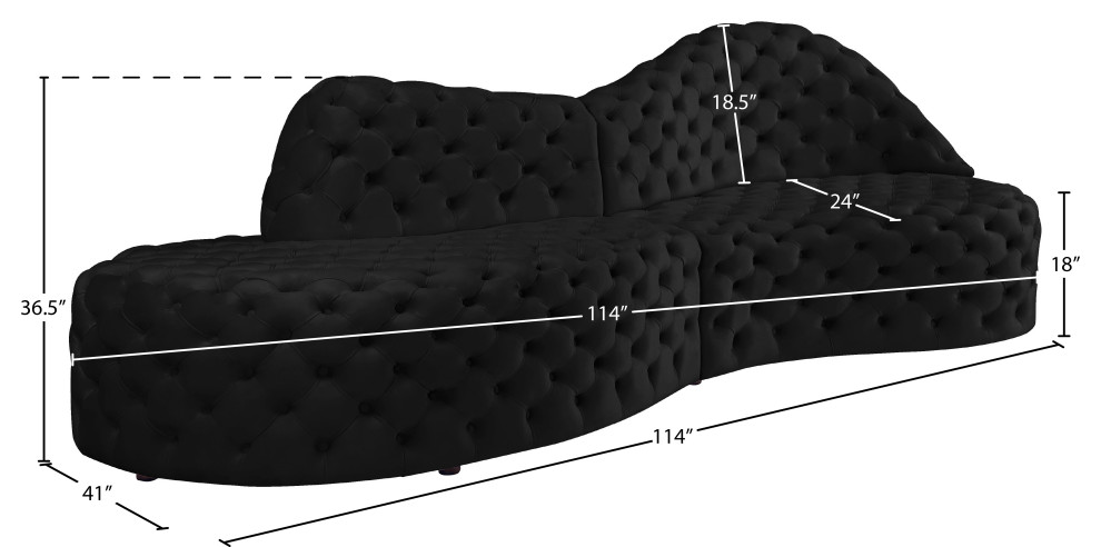 Settle in for family game night atop this Royal velvet sectional that's upholstered with soft black velvet material. This 3-piece sectional has a lot to offer, with its deep seating and extra wide design that gives you oodles of room to move around and get comfy. The tufted design of the arms, back, and seats adds to their durability and soft, welcoming touch. The sectional comes in neutral colors to mesh nicely with other elements in your room.