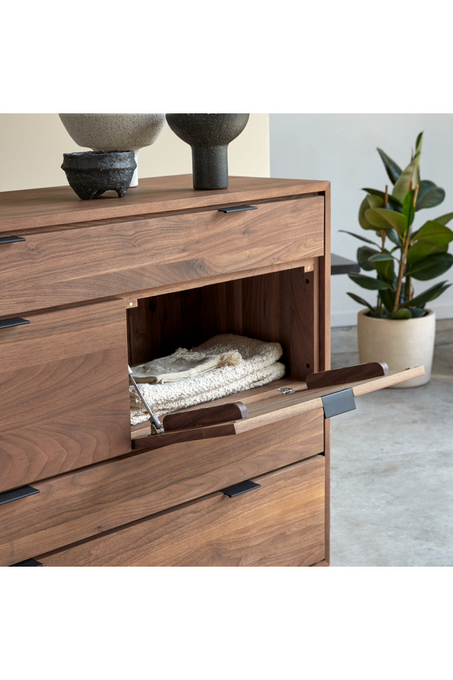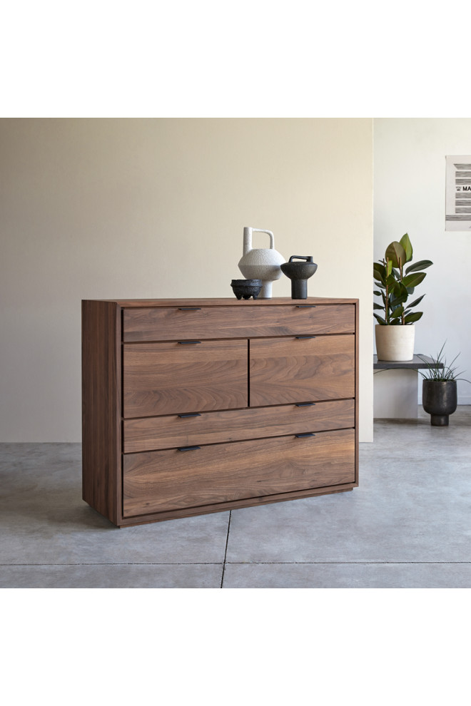 The Senson solid walnut chest of drawers: premium quality furniture that will elevate your living room or dining room! We like its high-quality features: the traditional assembly, the drawers with invisible runners, the wood that's already oiled so it's super-easy to care for, and the smart storage... depending on what you want to fill it with, it offers compartments, high and low drawers.