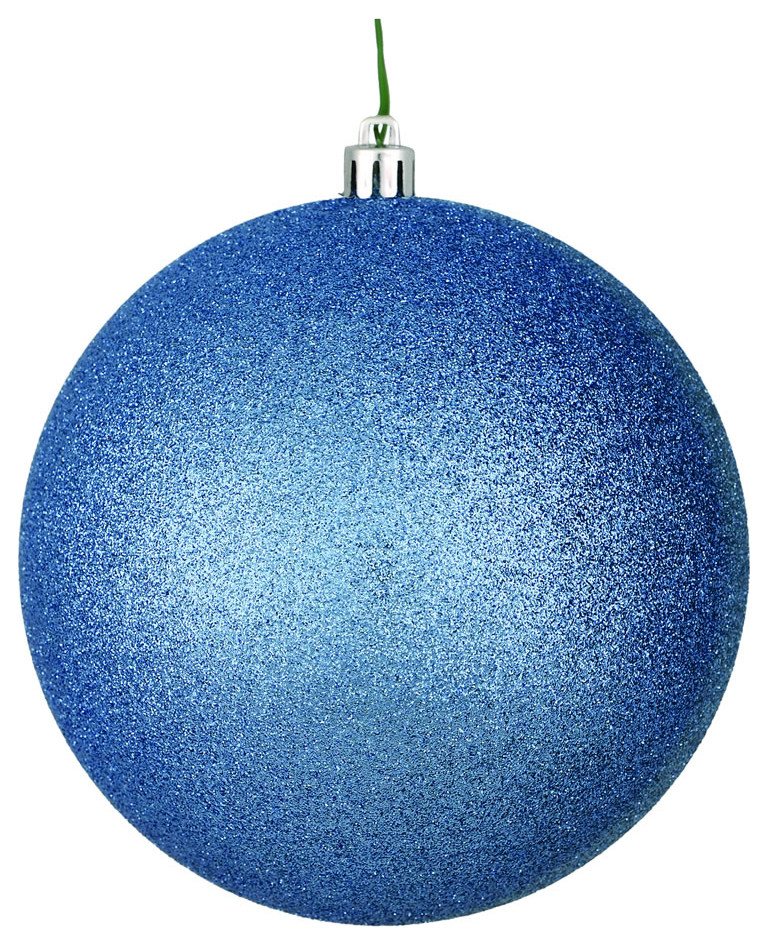 Vickerman 8" Periwinkle Glitter Ball Ornament. This ornament features glitter finish that will add shimmer to any holiday decorating project. This item is made from shatterproof plastic for extended protection from breaking. The cap is drilled and looped with floral wire to ensure it is reliable and ready to hang. This unique ornament is an exceptional addition to any collection as it matches well with a variety of dcor and goes perfectly on a holiday tree.
