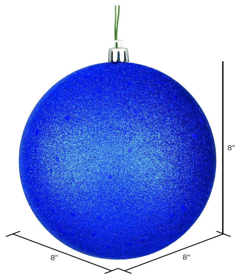 Vickerman 8" Midnt Blue Sequin Ball Ornament. This ornament features sequin finish that will add shimmer to any holiday decorating project. This item is made from shatterproof plastic and utilizes a drilled and wired secure cap for reliable hanging. This unique ornament is an exceptional addition to any collection as it matches well with a variety of decor and goes perfectly on a holiday tree