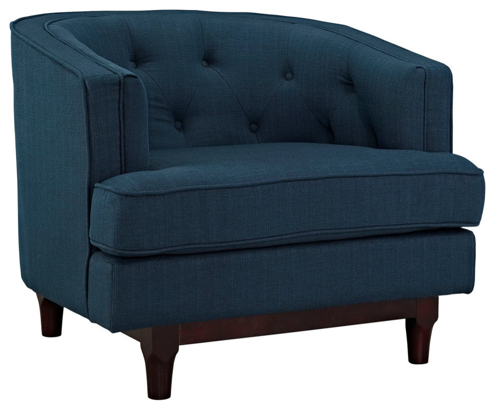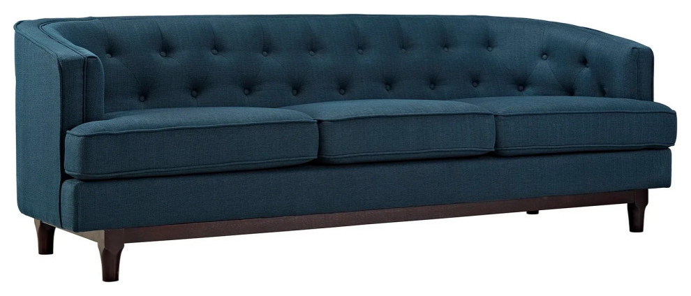 Sale the tide of elegance with Violet. Buoyed with exquisite deep button tufting and fine trim, Violet comes upholstered in polyester with a walnut stained wood leg base with non-marking foot glides. Solidly made with exceptional support, Violet features dense foam cushioning, removable seat covers for easy cleaning and generous seating space. Combining mid-century style with ageless nobility, the Violet Living Room Set is perfect for modern and eclectic living rooms, lounge spaces, and reception areas.Specifications